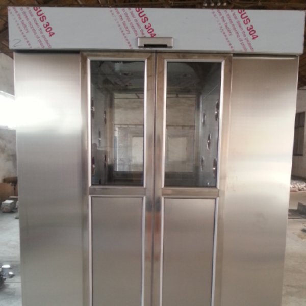 一、風淋室是人員進出潔凈室所必需的通道,并同時起到氣閘室密閉潔凈的作用,是進行人員凈化和防止室外空氣污染潔凈區的有效設備。為了減少由于人員進出所帶來的大量塵埃粒子,經高效過濾器過濾后的潔凈氣流由可旋轉噴嘴從各個方向噴射至人身上,有效而迅速清除塵埃粒子,清除后的塵埃粒子再由初、高效過濾器過濾后重新循環到風淋區域內。